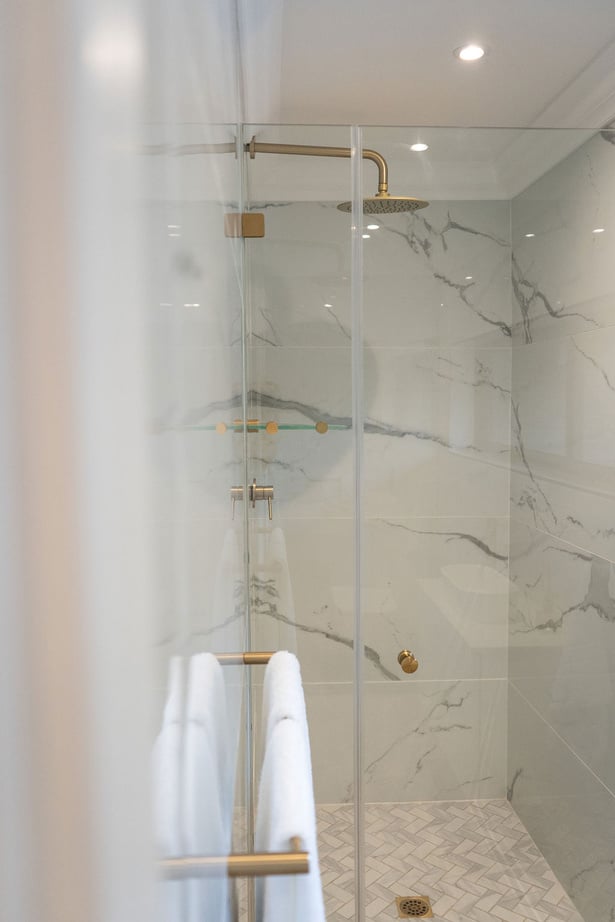 Second bedroom equipped with a king-size bed and its own ensuite bathroom featuring a shower for added comfort and convenience.